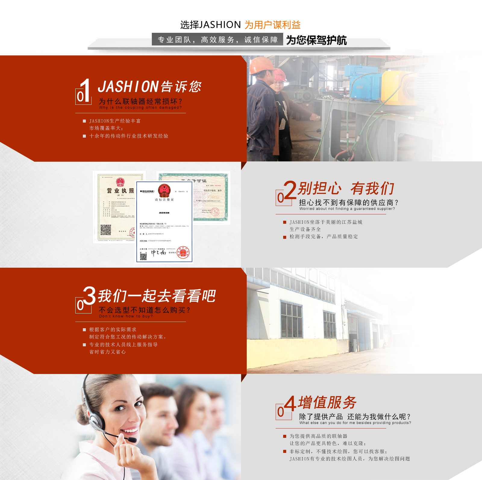 JASHION服務(wù)熱情,產(chǎn)品品質(zhì)有保障!“2018年6月,我公司需要采購(gòu)一批鼓形齒式聯(lián)軸器,找到JASHION的客服進(jìn)行了解,通過(guò)JASHION不厭其煩的溝通各項(xiàng)產(chǎn)品參數(shù)和技術(shù)指導(dǎo)輔助我們解決所需求的問(wèn)題,且?guī)椭覀兝L制了詳細(xì)的生產(chǎn)圖紙,被JASHION積極的態(tài)度所折服,成為鹽城佳信傳動(dòng)機(jī)械有限公司的忠實(shí)粉絲...